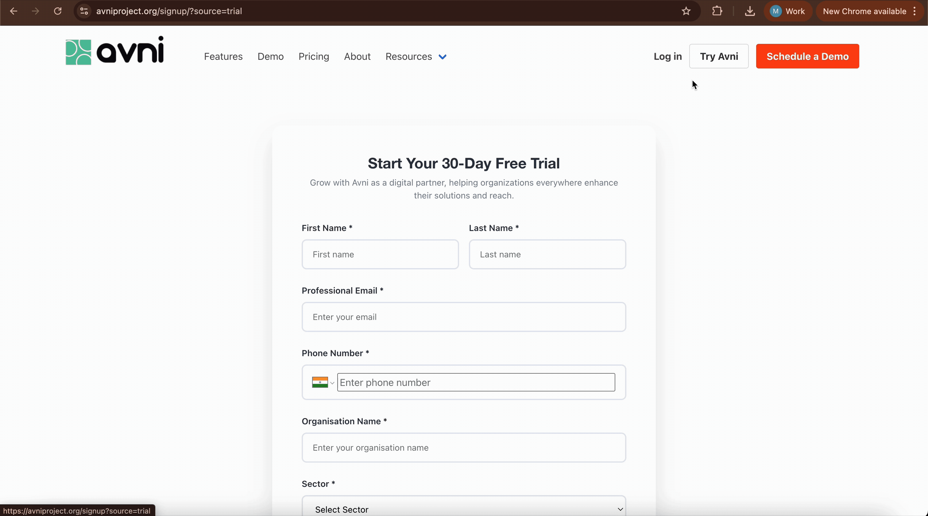Earlier, you had to fill out a form on the Avni website and wait for our team to create your organisation before you could begin setting up your app. With this update, you can start creating your app right away after submitting the form.