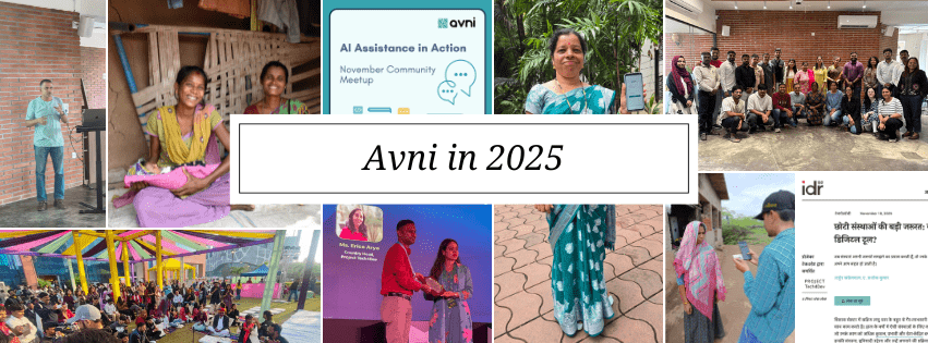 As we enter the new year, we are clear about what we want to build and how we want to show up for the sector. The learnings from 2025 give us a strong base to move faster, scale what has worked, and be more deliberate about where we invest our time and energy. In 2026, our focus will be on deepening impact, expanding Avni’s use across organisations and domains, and translating our experience into tools and practices that genuinely help NGOs do their work better. Wish us luck, and wish you a very happy 2026. See you on the other side.