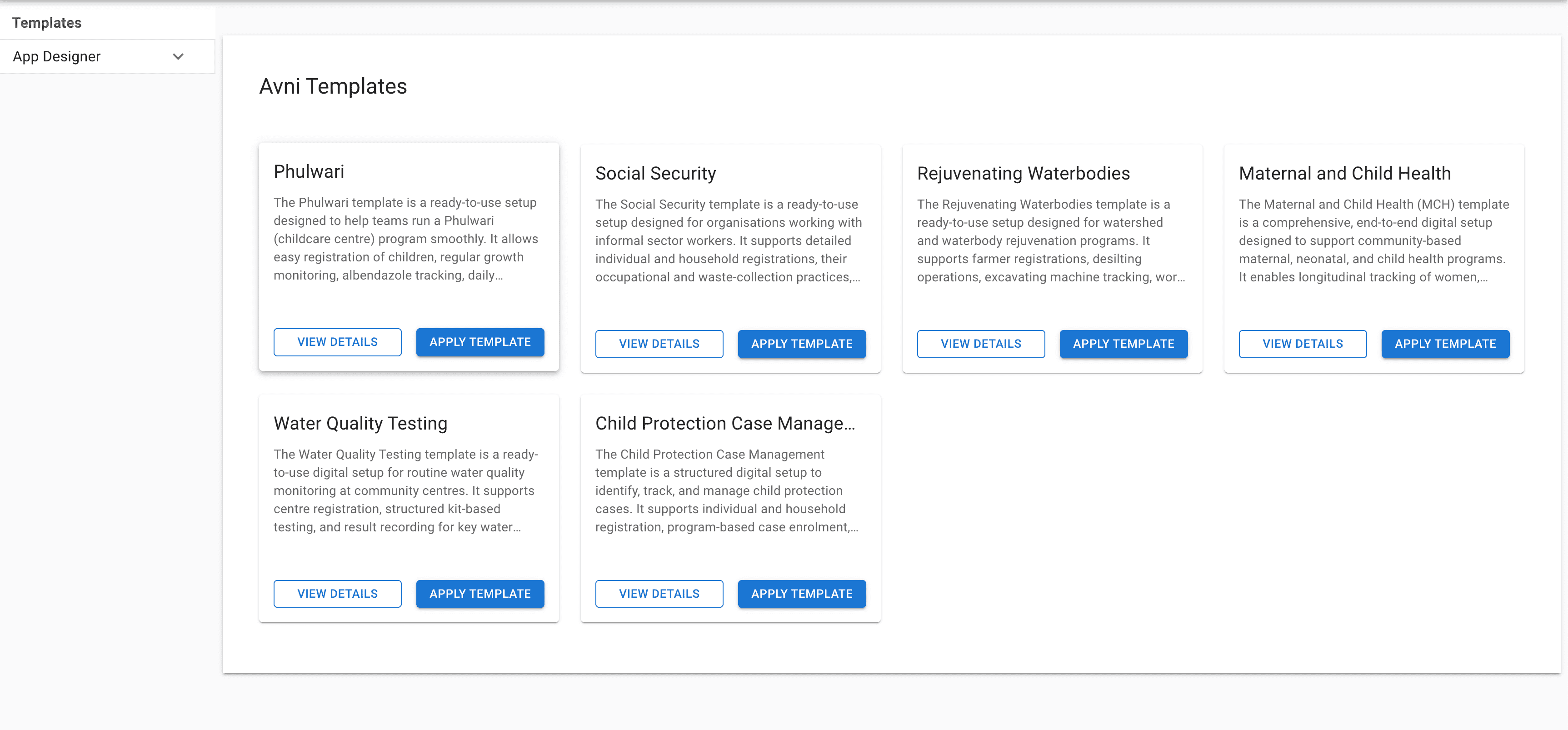 Earlier this year, we simplified the self-signup process on Avni. Now, we're taking it a step further with Templates—pre-built configurations for common use cases that you can apply with just a click.