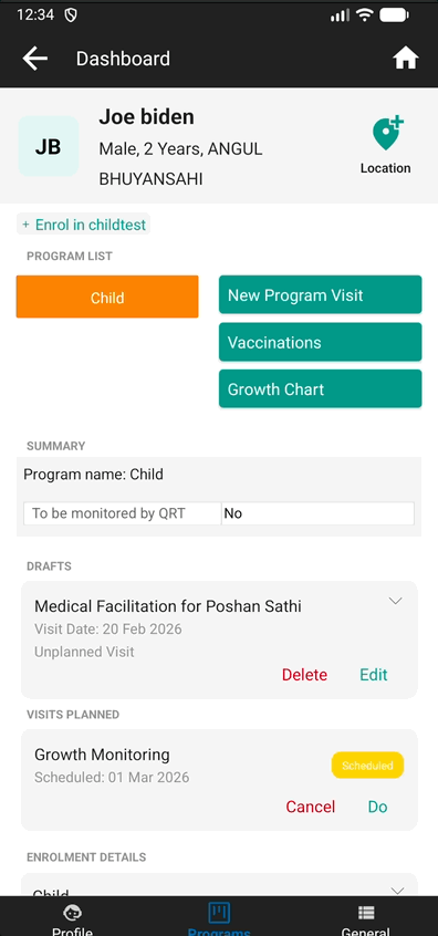Avni's draft save feature now extends to program enrolments and their visits. If you're working with large forms where all information isn't available at once, you can save your progress as a draft and return to complete it later. These drafts remain on the device and are not synced to the server until the form is fully saved. Drafts that are left untouched for more than 30 days are automatically cleaned up.